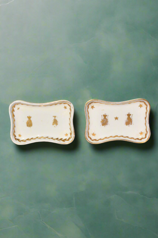 French Pair of Napoleon Bee Porcelain Trinket Dishes