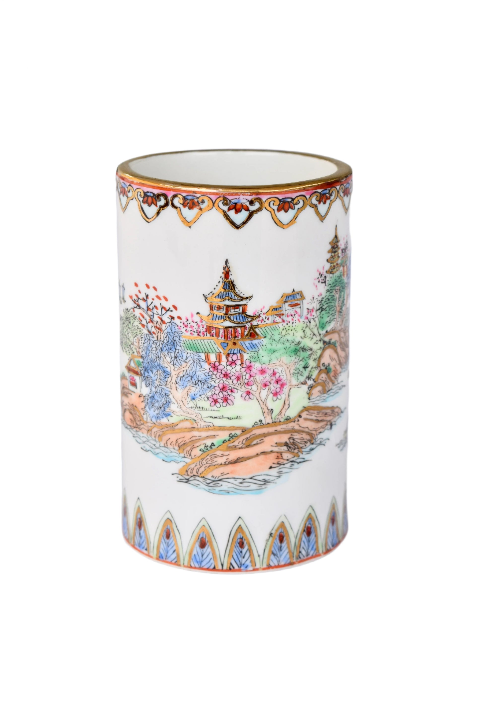 While a modern production piece, it demonstrates the enduring appeal of traditional Chinese landscape motifs in contemporary decorative arts.