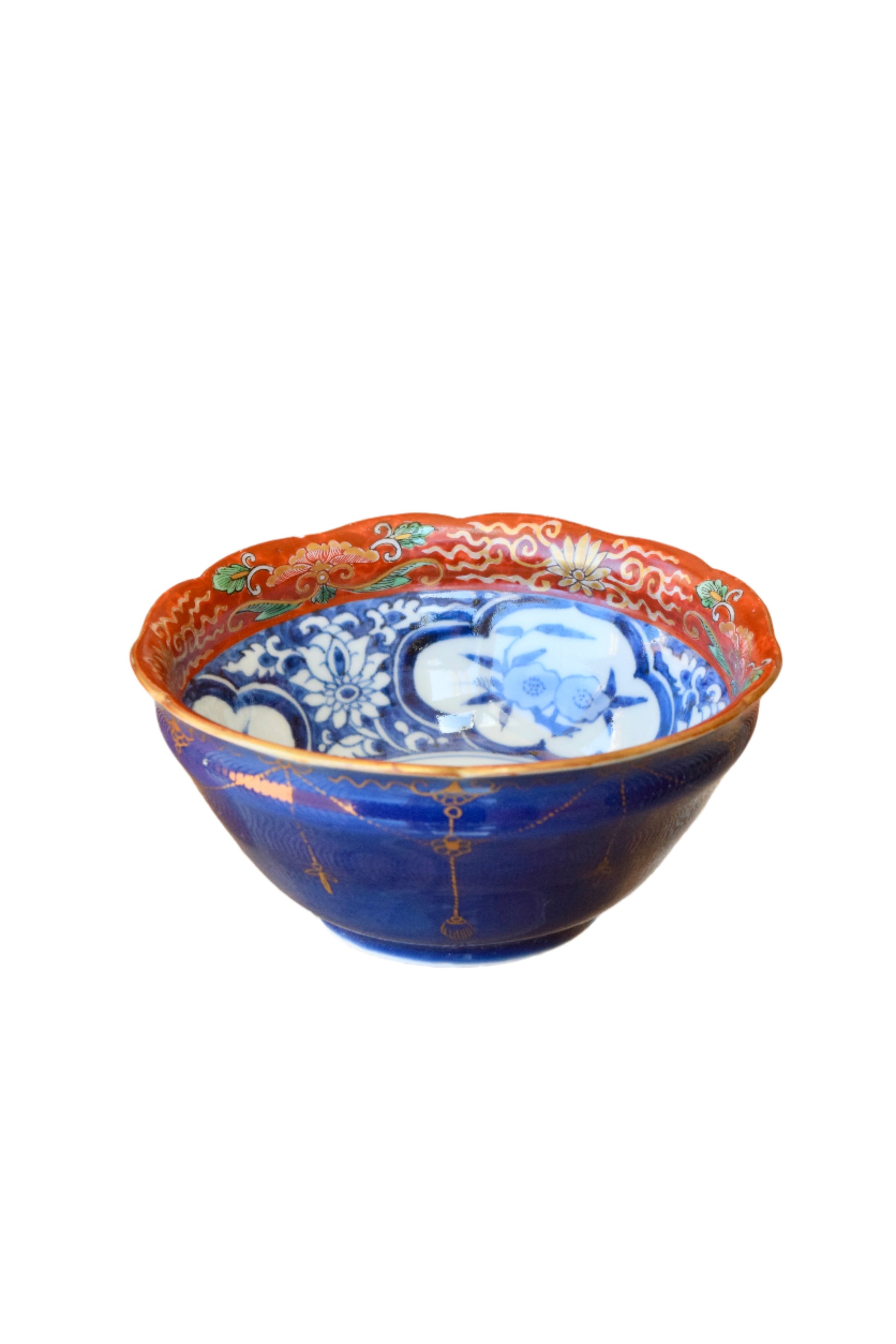 - Classic Imari palette combining underglaze blue, iron red, and gilt