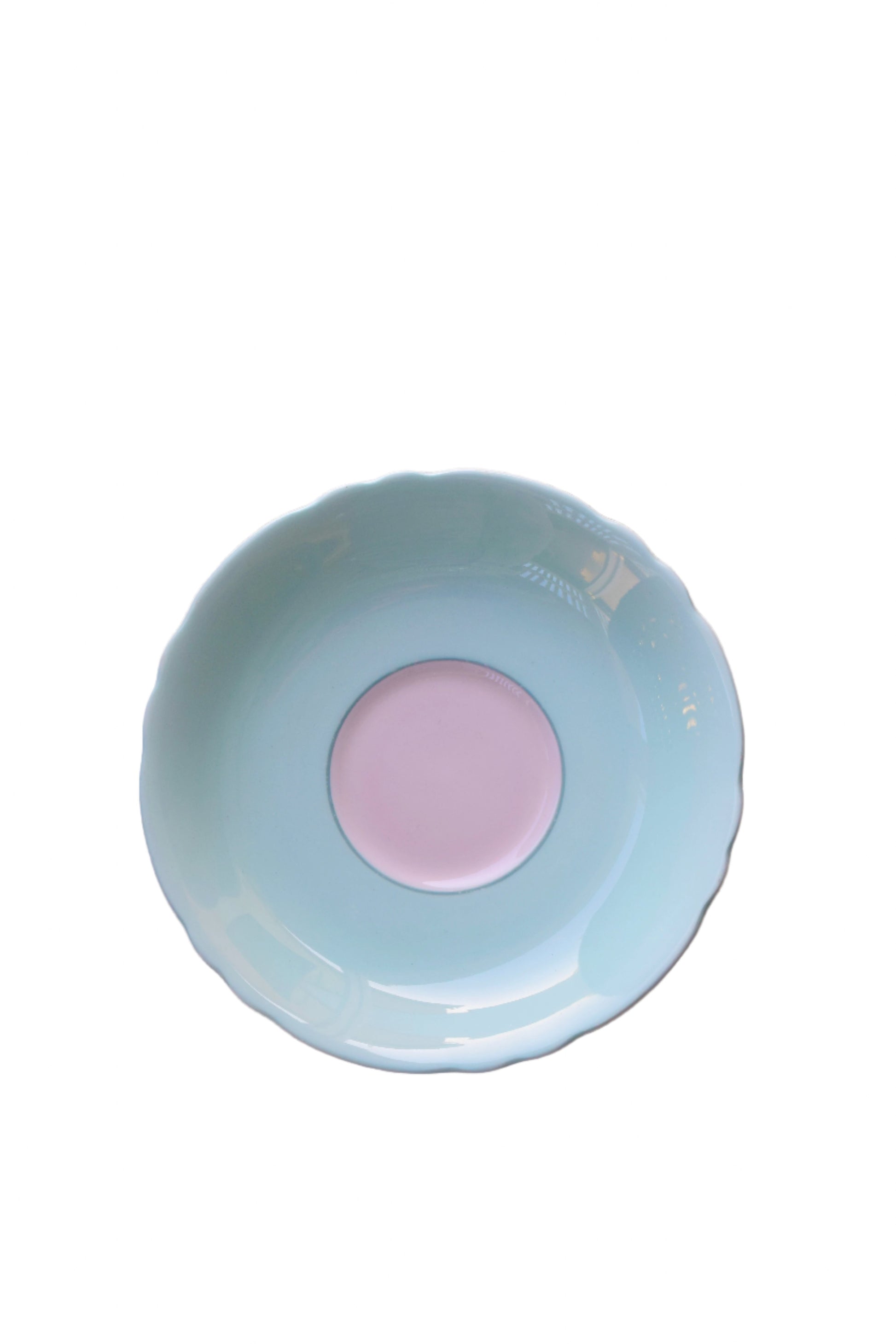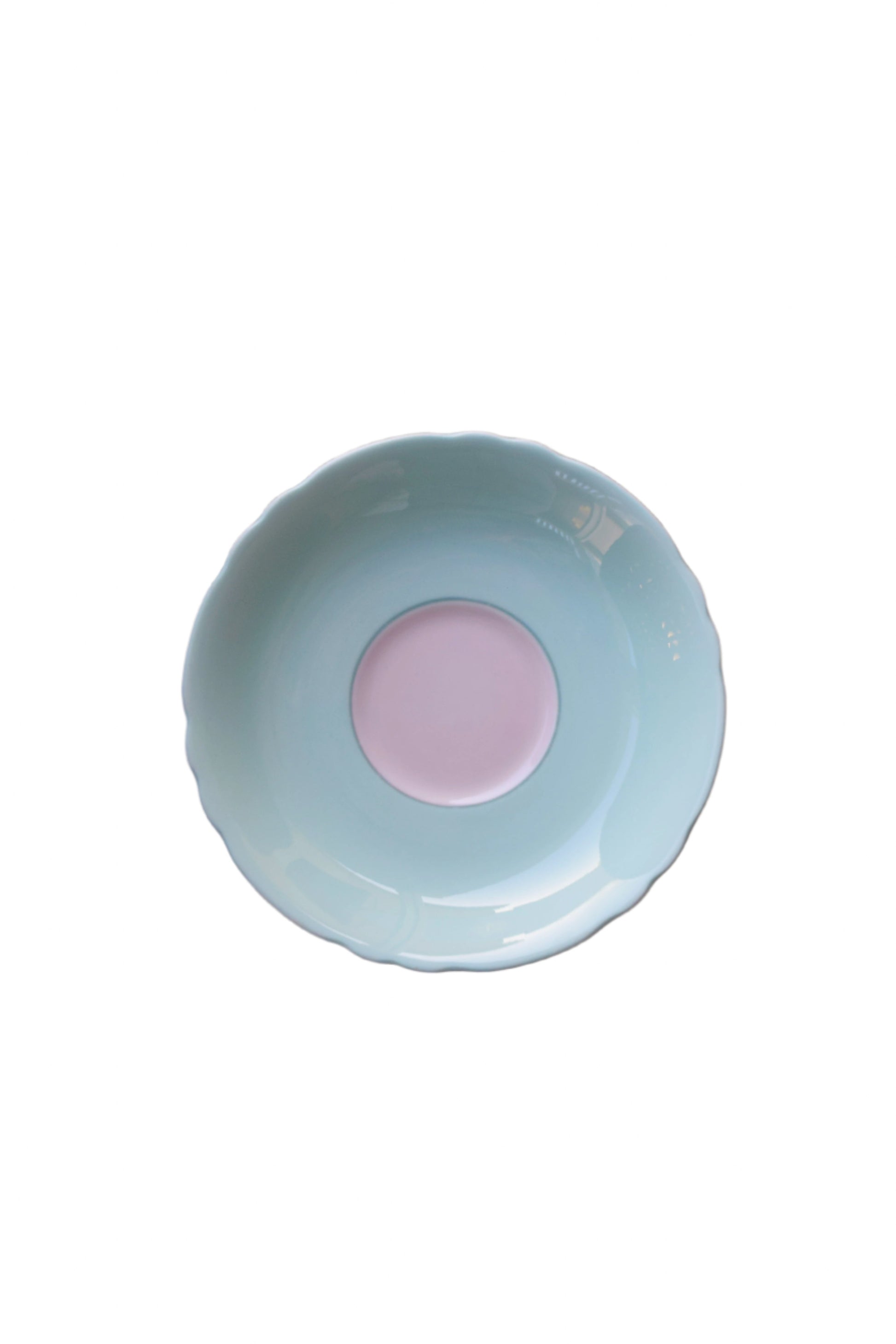 OVERVIEW: A refined Paragon bone china saucer featuring their signature high-quality production with an elegant mint green ground and pink center, characteristic of their pre-war aesthetic.